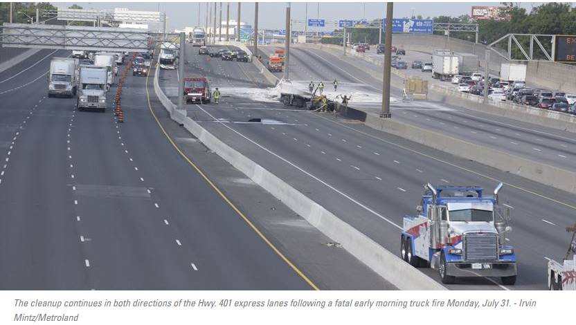根据CBC报道,7月31日早5:15左右,有人在401上听到巨响,看到火球冲出!