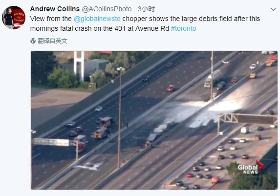 据急救人员说,两辆卡车相撞,其中一辆是运输大卡车,地点是401的Avenue Road附近。