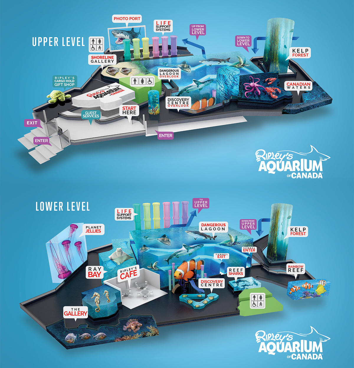 里普利水族馆是加拿大最大的室内水族馆,上下两层,占地面积12,542平方米。