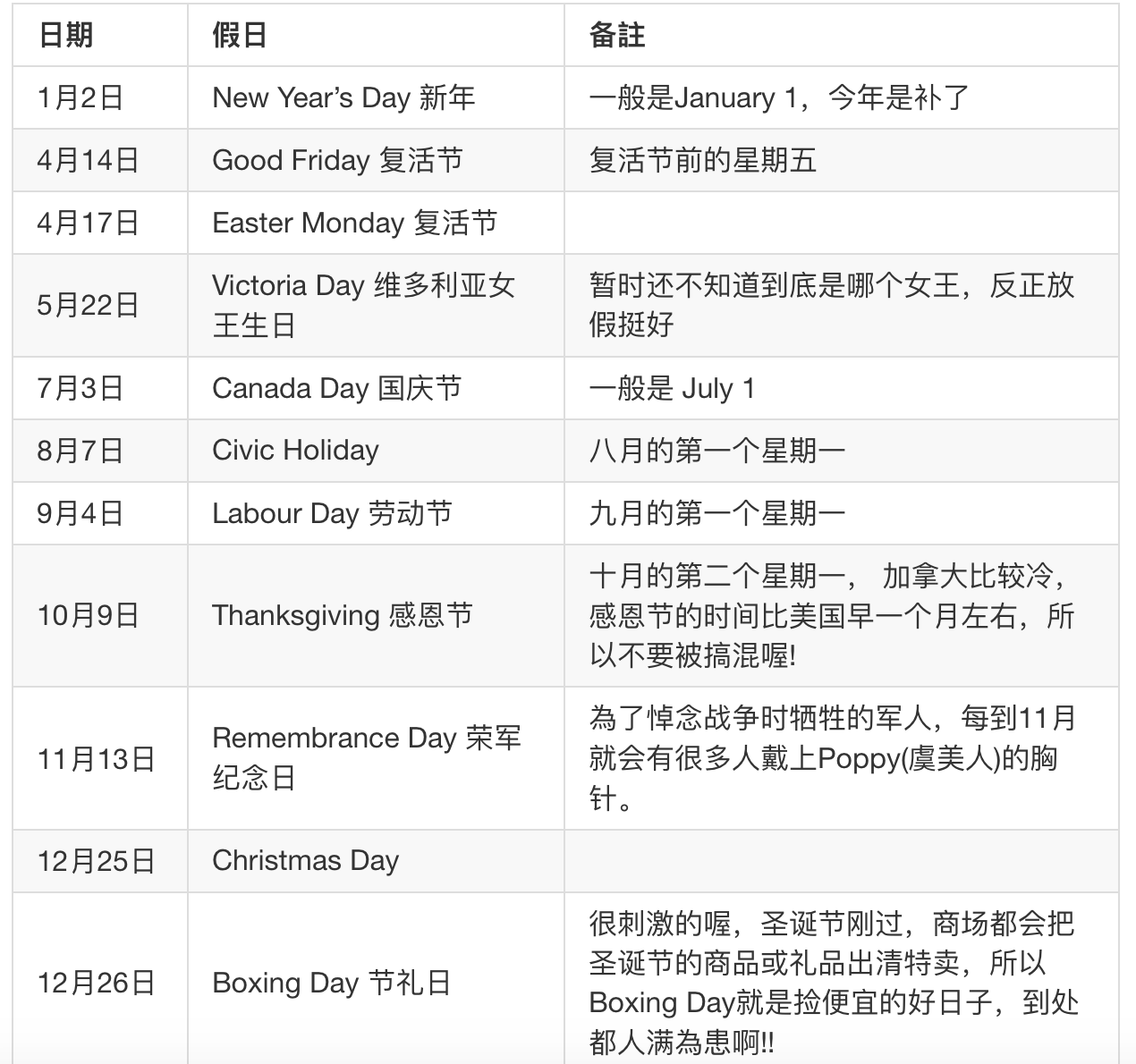 好哩,今天要来介绍加拿大的国定假日Statutory Holidays in Canada。